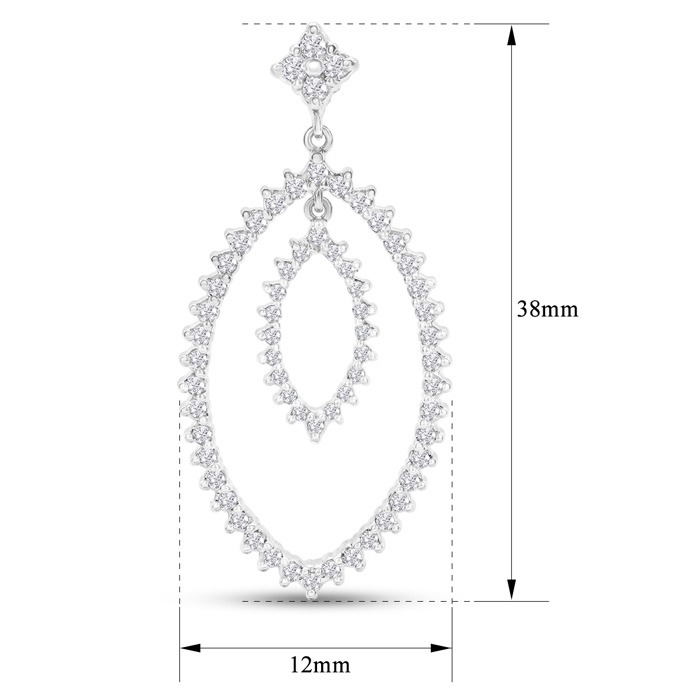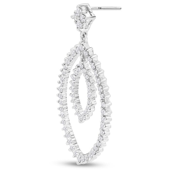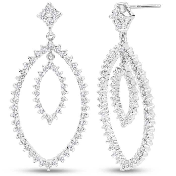 1 1/2 Carat Natural Diamond Drop Earrings In 14K White Gold, 1 1/2 Inches