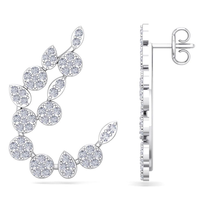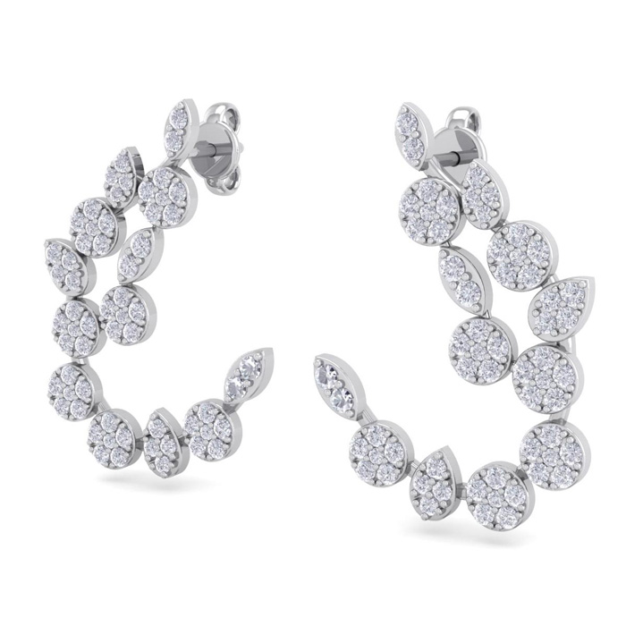 1 1/4 Carat Natural Pave Diamond Fancy Drop Earrings In 14 Karat White Gold