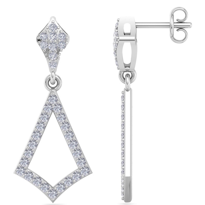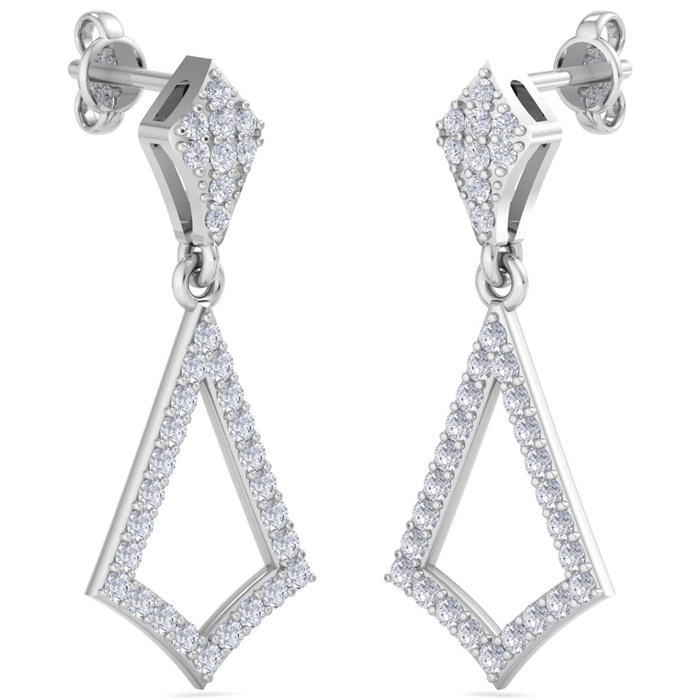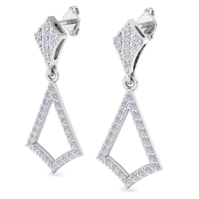 1/2 Carat Natural Diamond Drop Earrings In 14 Karat White Gold, 1 Inch