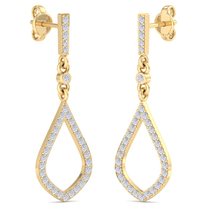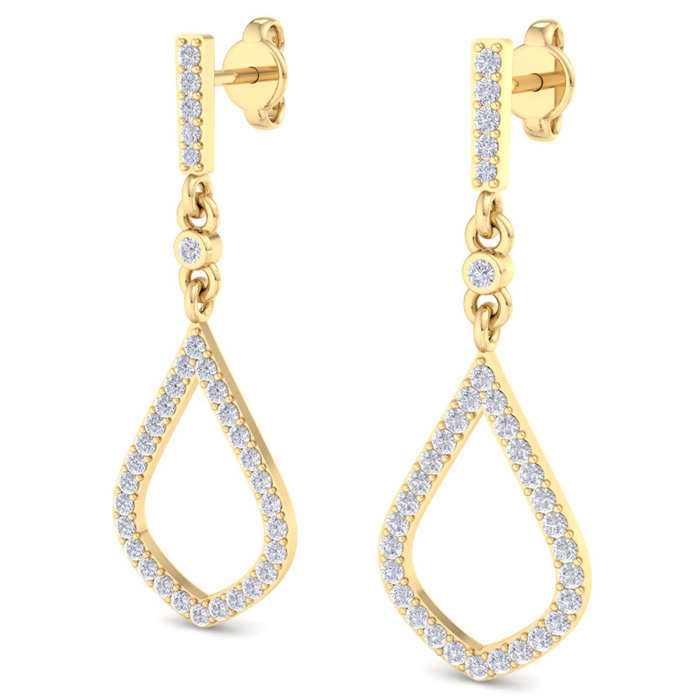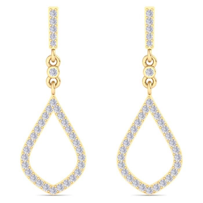 1/2 Carat Natural Diamond Drop Earrings In 14 Karat Yellow Gold, 1 1/4 Inches