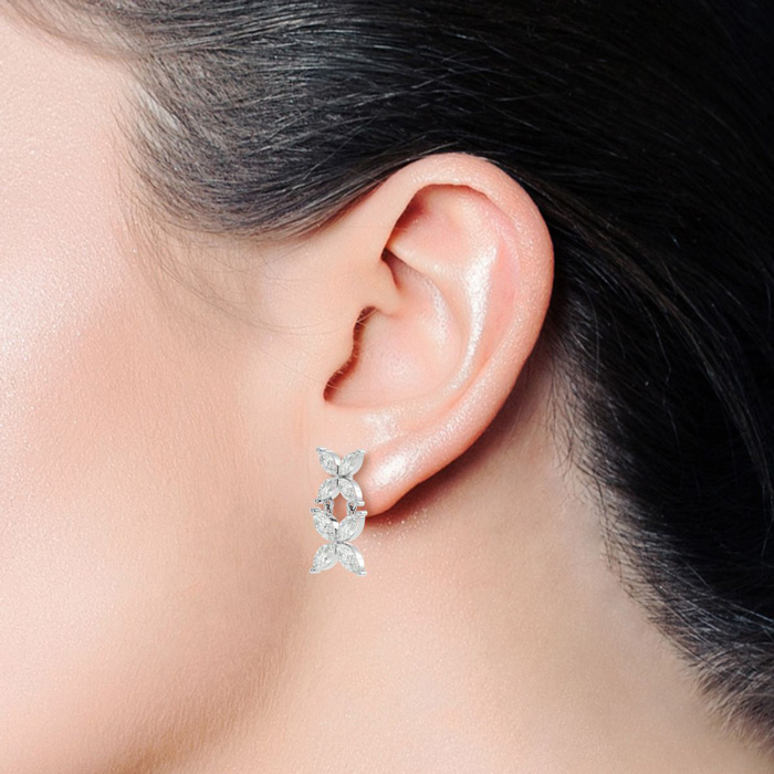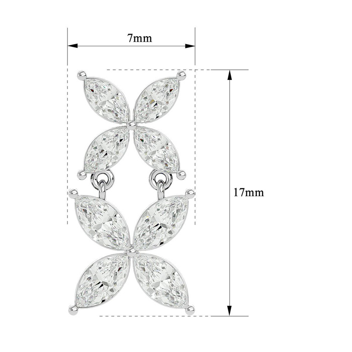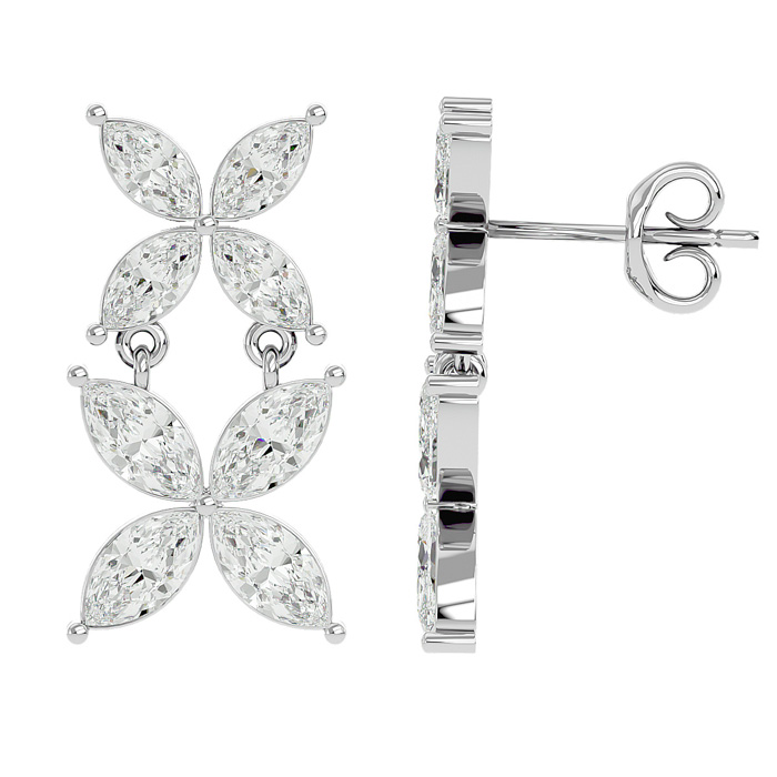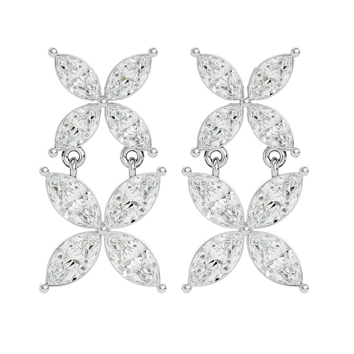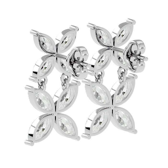 1 3/4 Carat Natural Marquise Shape Diamond Cluster Dangle Earrings In 14 Karat White Gold