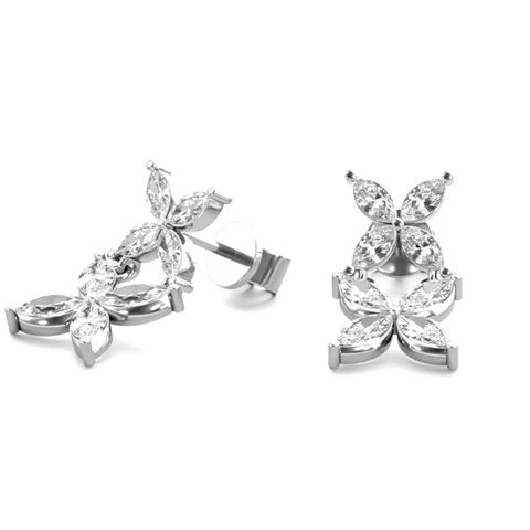 1 3/4 Carat Natural Marquise Shape Diamond Cluster Dangle Earrings In 14 Karat White Gold