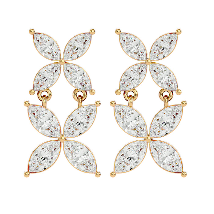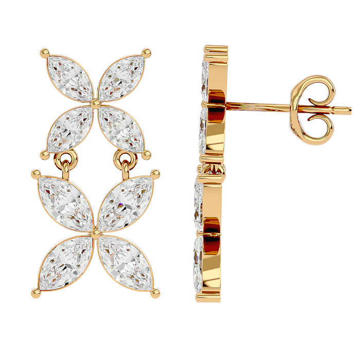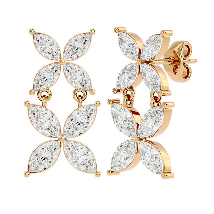 1 3/4 Carat Natural Marquise Shape Diamond Cluster Dangle Earrings In 14 Karat Yellow Gold