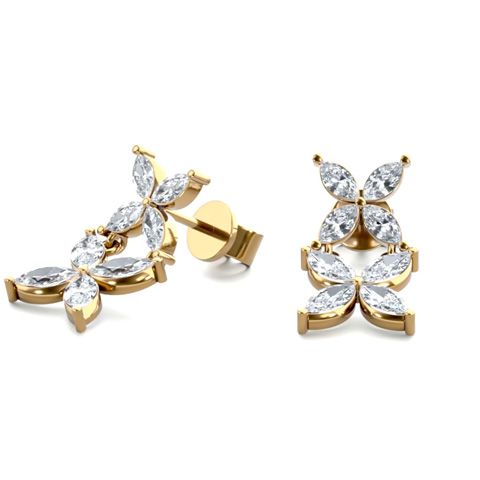 1 3/4 Carat Natural Marquise Shape Diamond Cluster Dangle Earrings In 14 Karat Yellow Gold