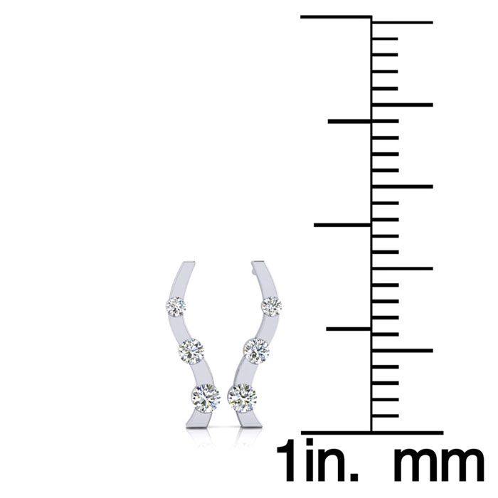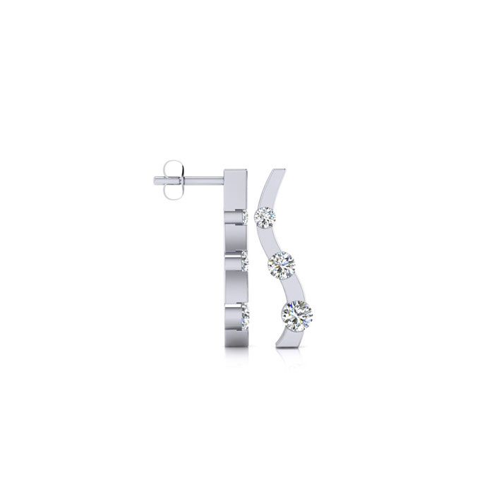 1/4ct Three Natural Diamond Curve Earrings In 14K White Gold