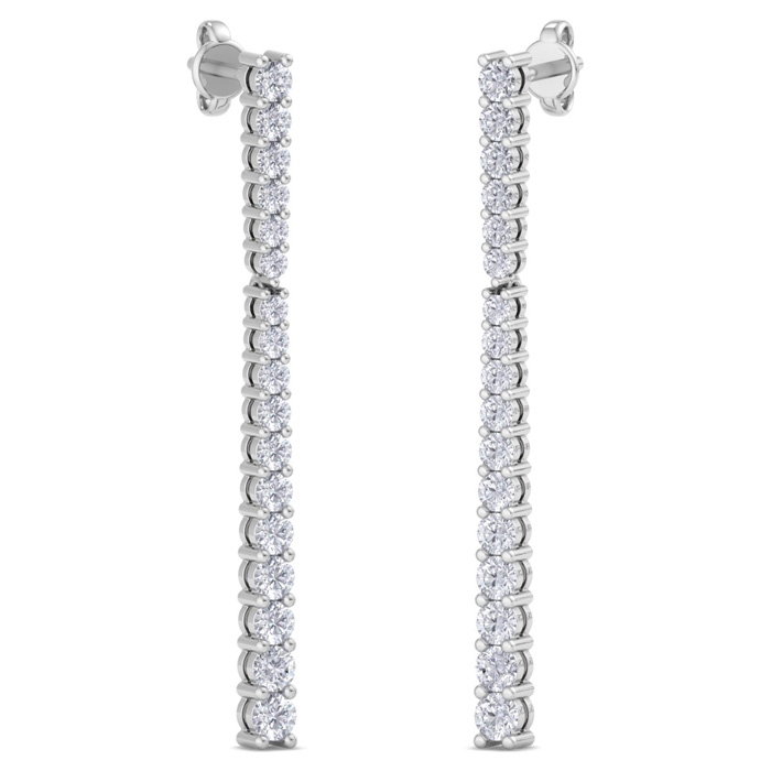 These fabulous diamond earrings feature 34 sparkling lab grown diamonds in G-H color, VS clarity. Total carat weight is 1 carat. These earrings are in 14 karat white gold and have secure post with friction backs. These bar earrings are just under 1 1/2 inches long.
