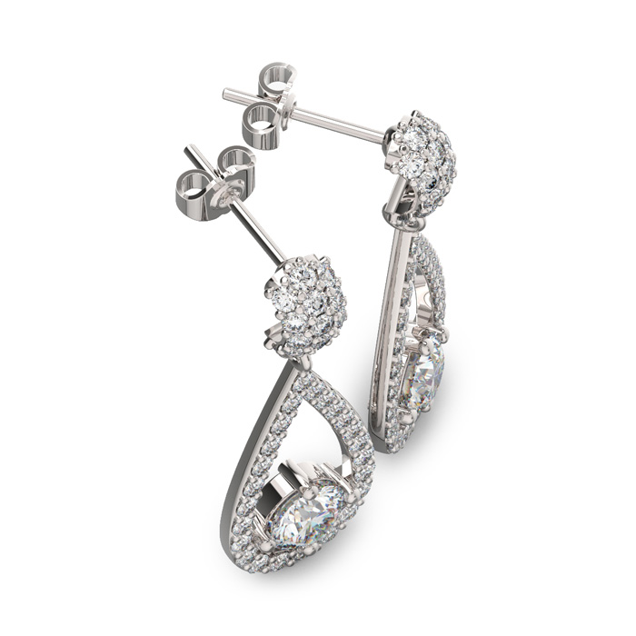 14K White Gold 3 Carat Natural Diamond Halo Teardrop Earrings