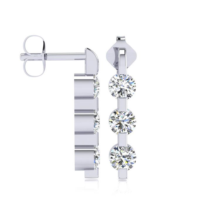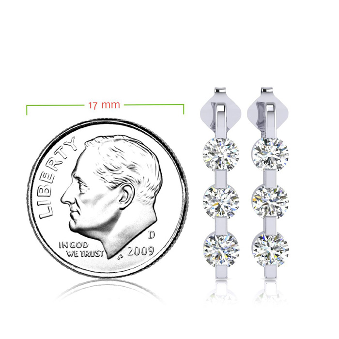 1ct Three Natural Diamond Drop Linear Earrings In 14K White Gold