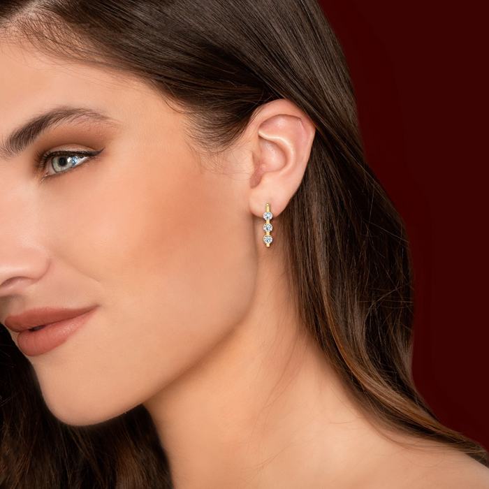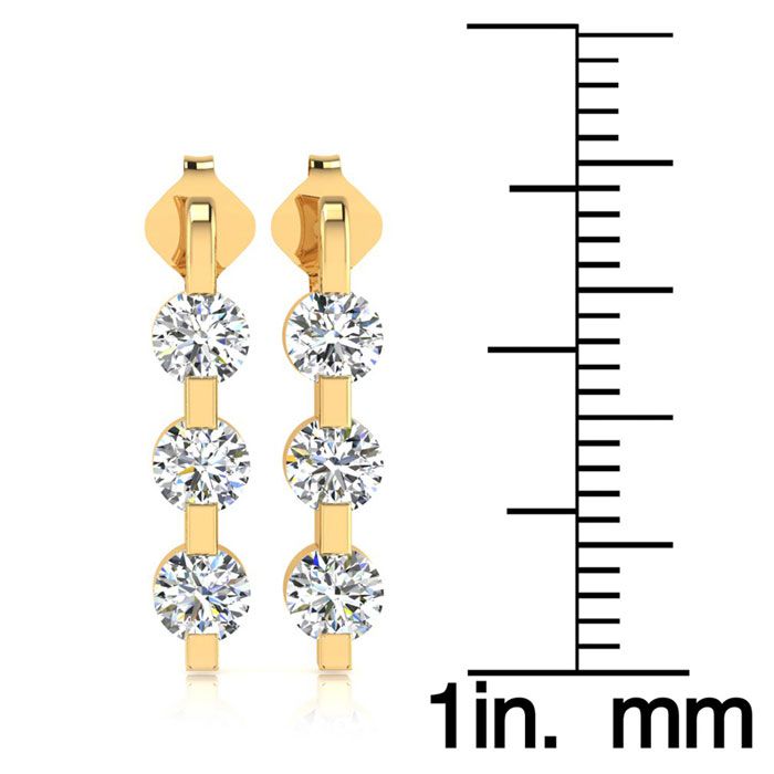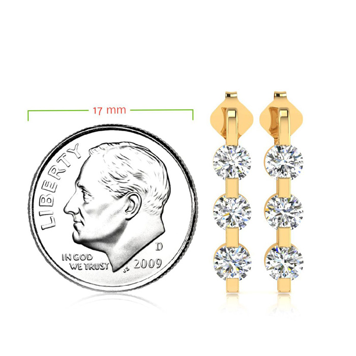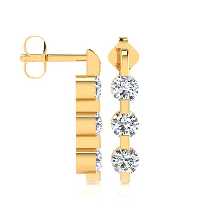 1ct Three Natural Diamond Drop Linear Earrings In 14K Yellow Gold
