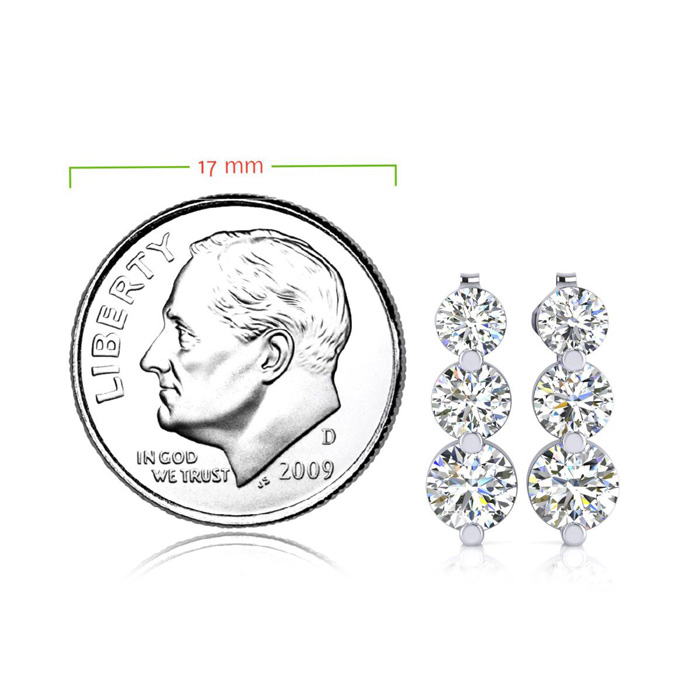 1ct Three Genuine Natural Natural Diamond Graduated Drop Earrings In 14K White Gold. Fantastic Value!