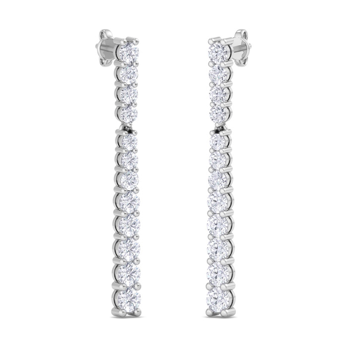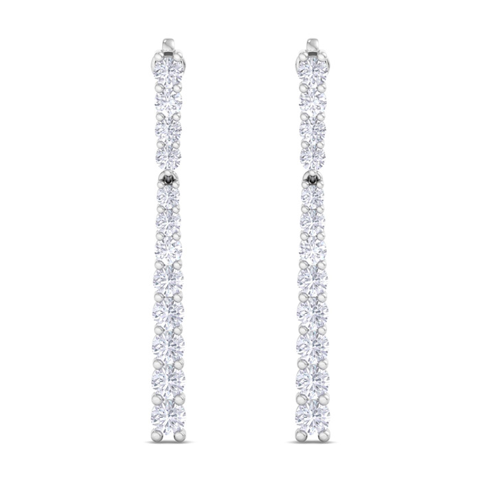 2 Carat Natural Diamond Bar Earrings In 14 Karat White Gold