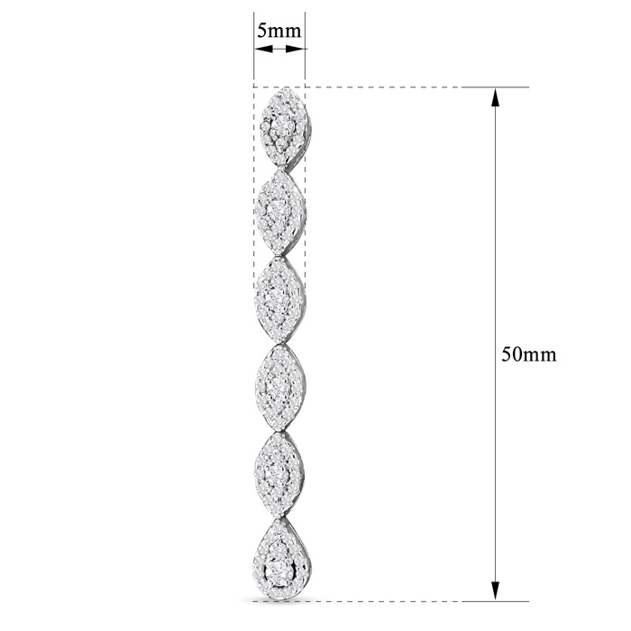2 Carat Natural Diamond Drop Earrings In 14 Karat White Gold, 2 Inches