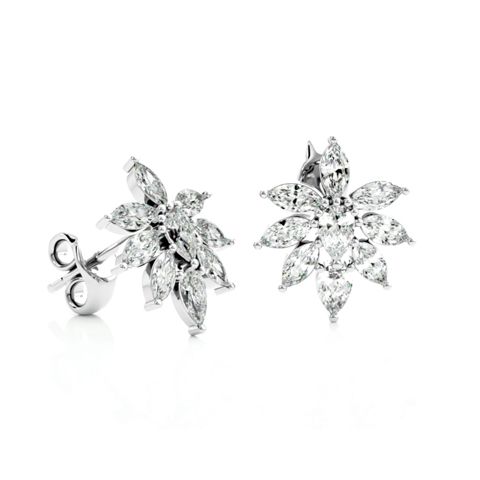 2 Carat Natural Fancy Diamond Cluster Stud Earrings In 14 Karat White Gold
