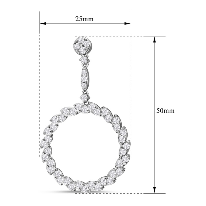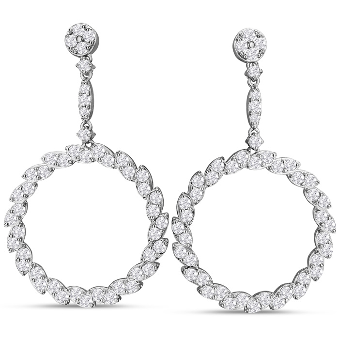 3 1/2 Carat Natural Diamond Drop Earrings In 14 Karat White Gold, 2 Inches