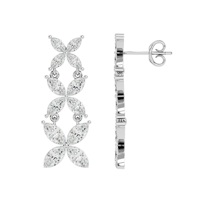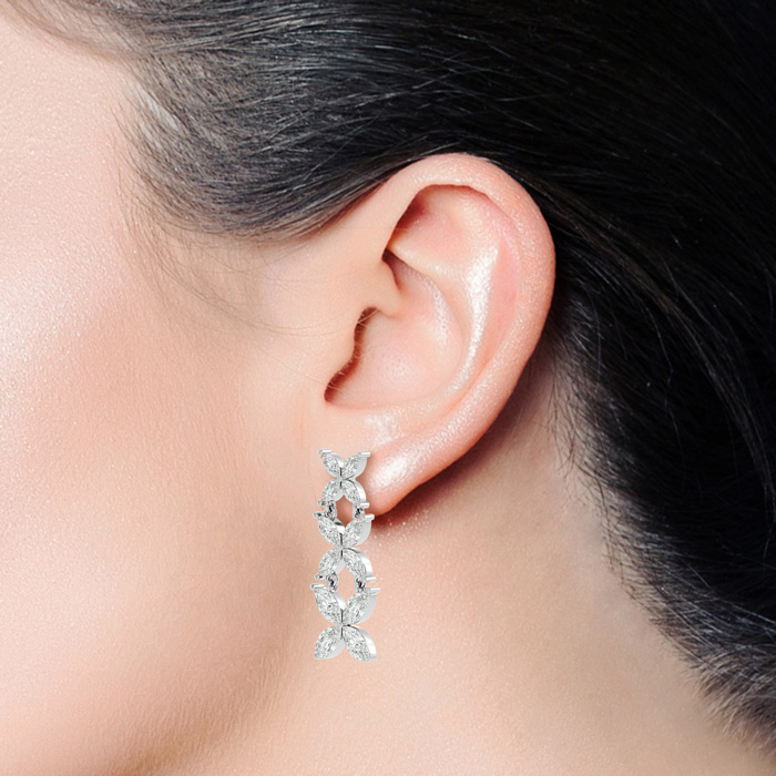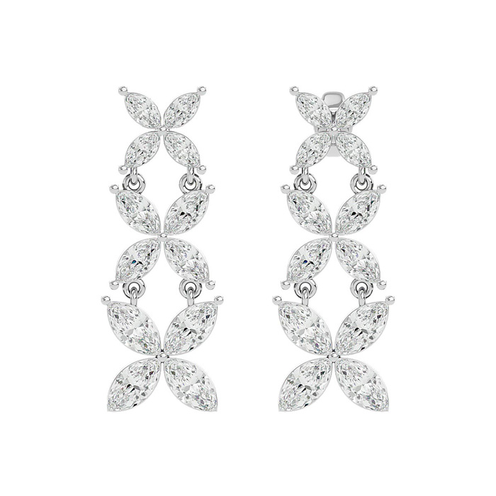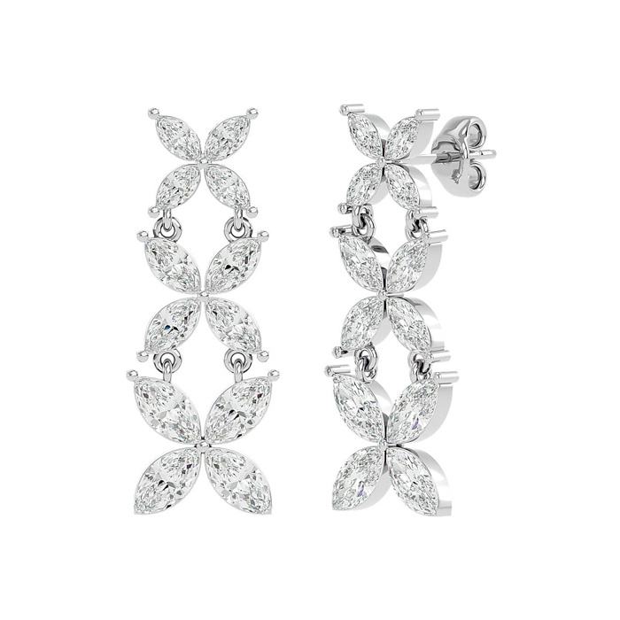 3 3/4 Carat Natural Marquise Shape Diamond Cluster Dangle Earrings In 14 Karat White Gold