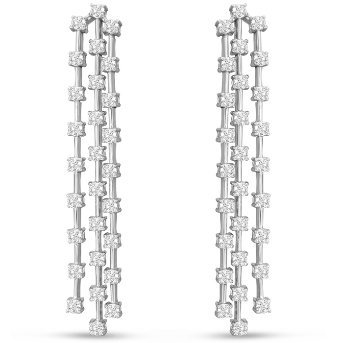 3 Carat Natural Diamond Drop Earrings In 14 Karat White Gold, 2 Inches