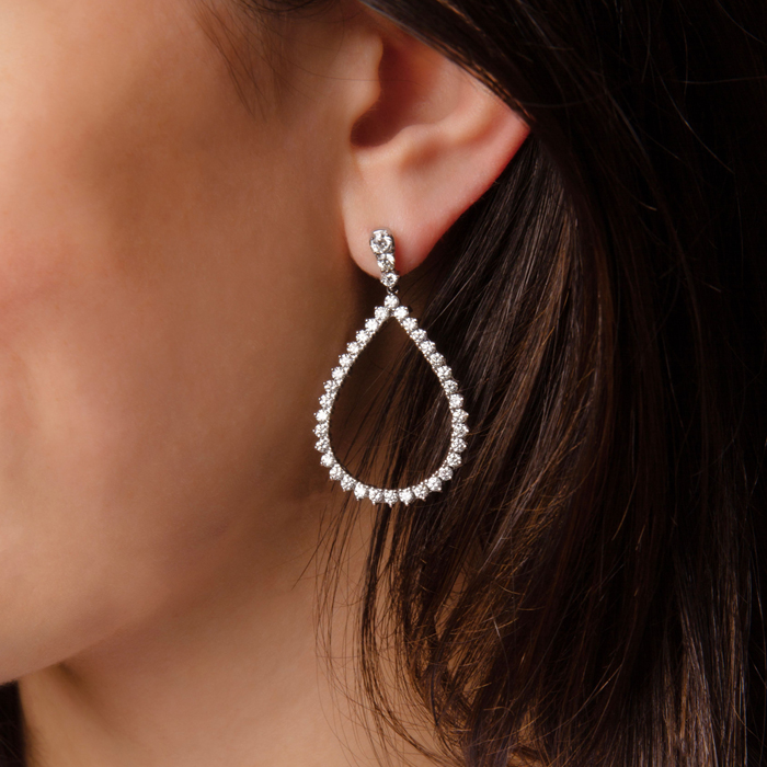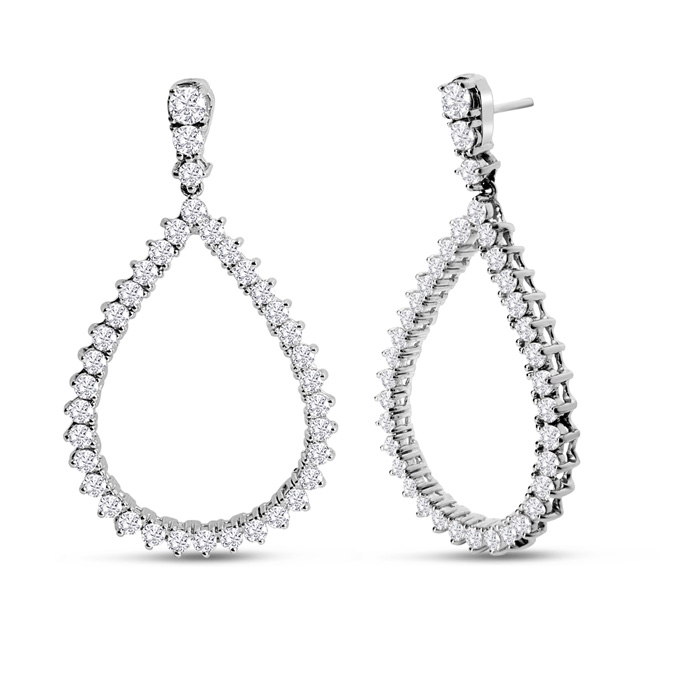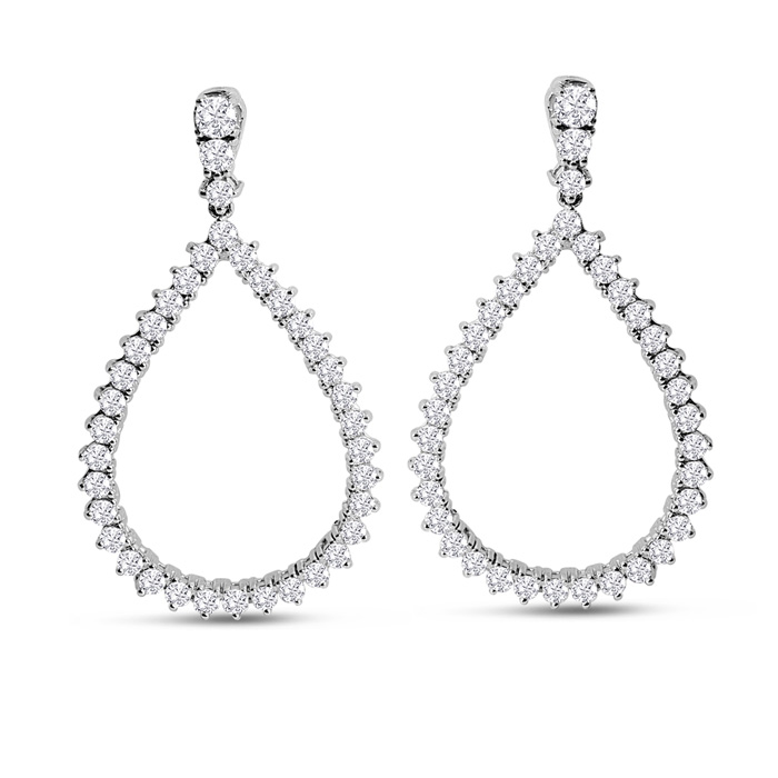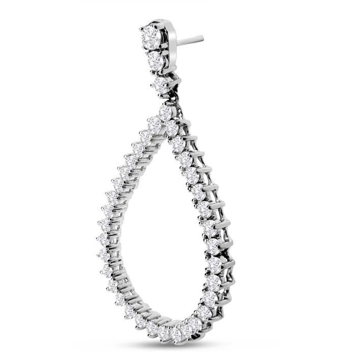 3 Carat Natural Diamond Drop Earrings In 14K White Gold, 1 1/2 Inches