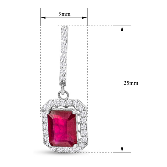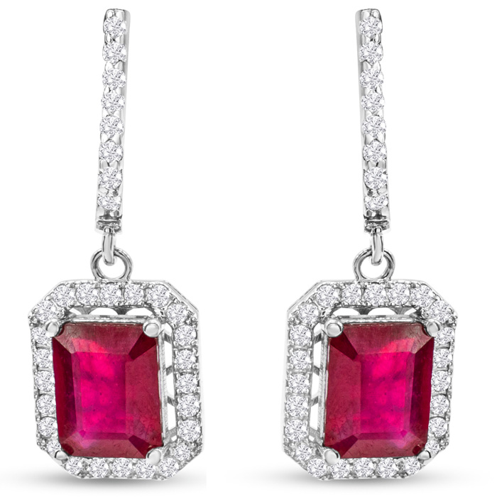 4 1/2 Carat Ruby and Diamond Drop Earrings In 14 Karat White Gold, 1 Inch