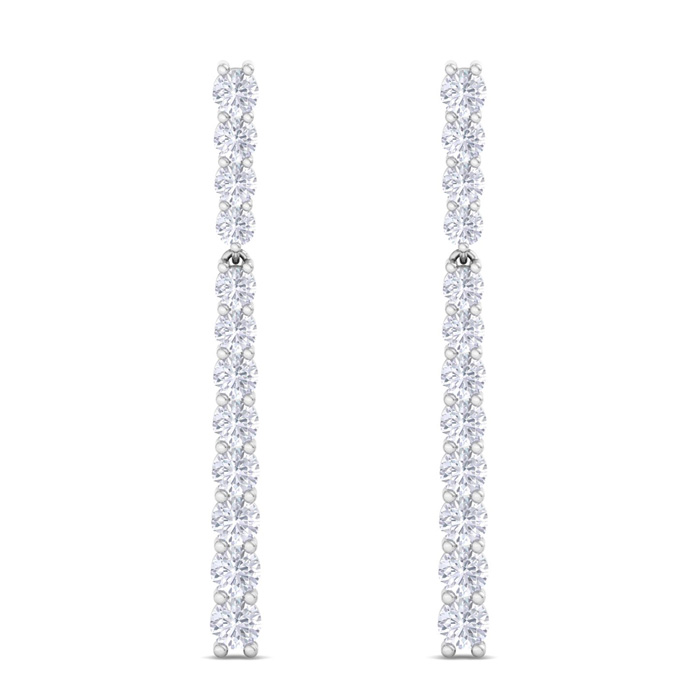 4 Carat Natural Diamond Bar Earrings In 14 Karat White Gold