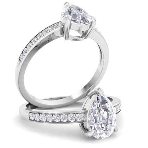 1 1/4 Carat Natural Pear Shape Diamond Engagement Ring In 14K White Gold