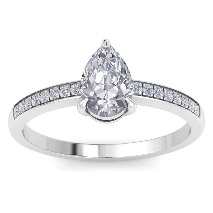 1 1/4 Carat Natural Pear Shape Diamond Engagement Ring In 14K White Gold