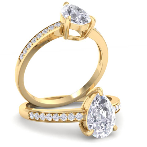 1 1/4 Carat Natural Pear Shape Diamond Engagement Ring In 14K Yellow Gold