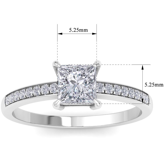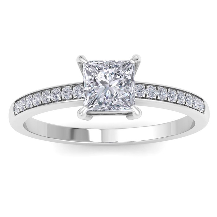 1 1/4 Carat Natural Princess Cut Diamond Engagement Ring In 14K White Gold