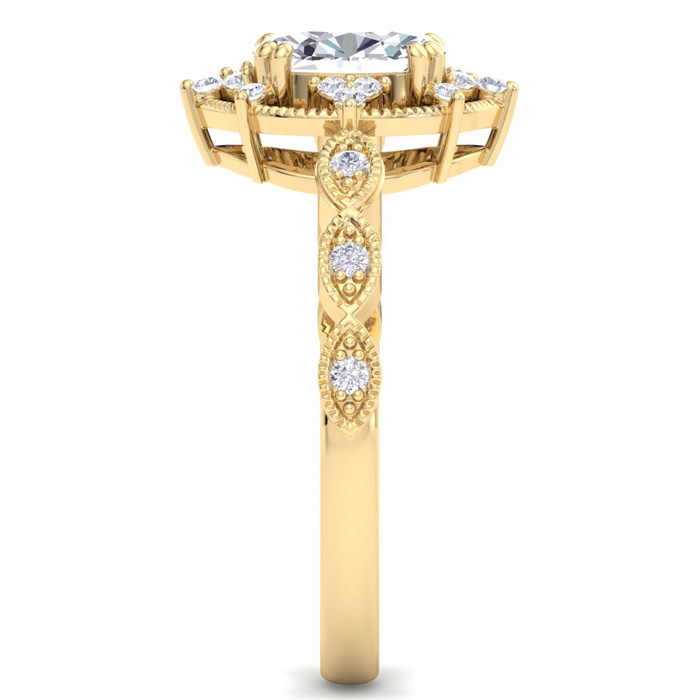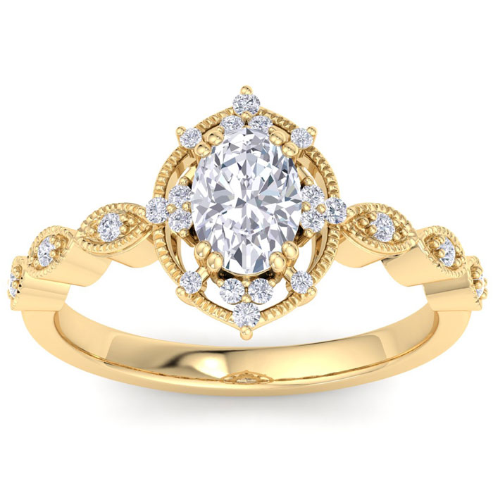 Retrograde Birthstones™ 1 Carat Oval Shape Halo Diamond Engagement Ring In 14K Yellow Gold