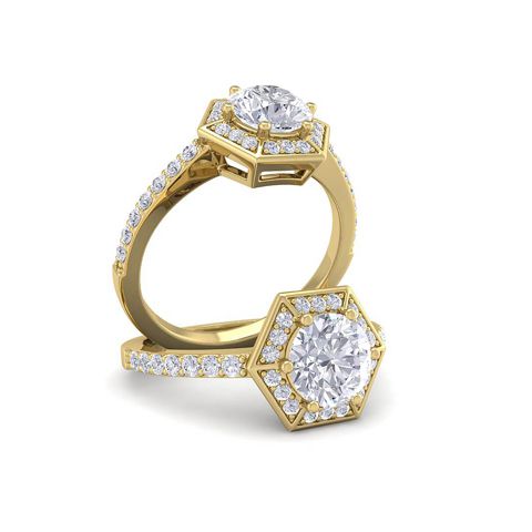 1 1/2 Carat Natural Halo Diamond Engagement Ring In 14 Karat Yellow Gold