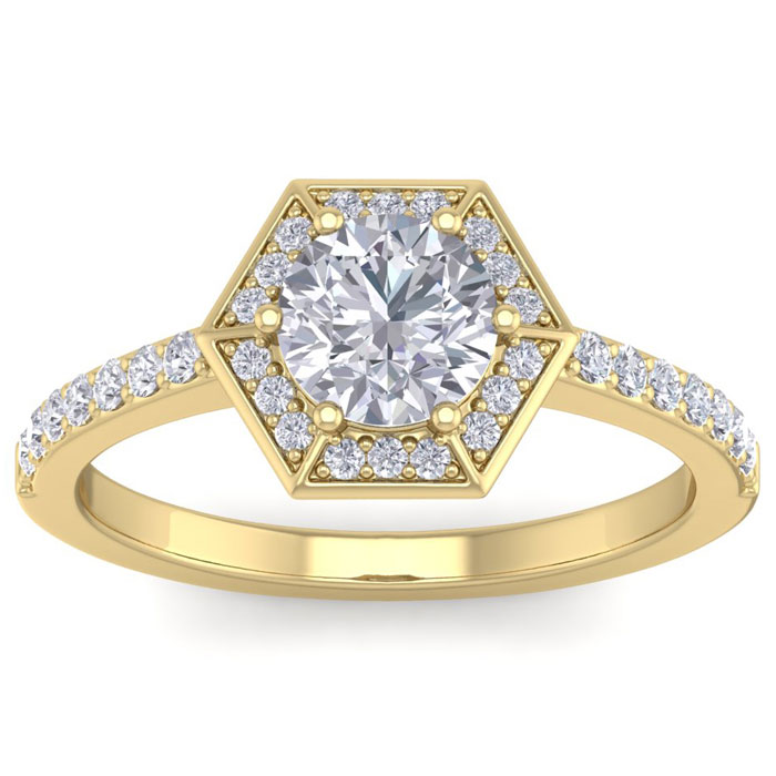 1 1/2 Carat Natural Halo Diamond Engagement Ring In 14 Karat Yellow Gold