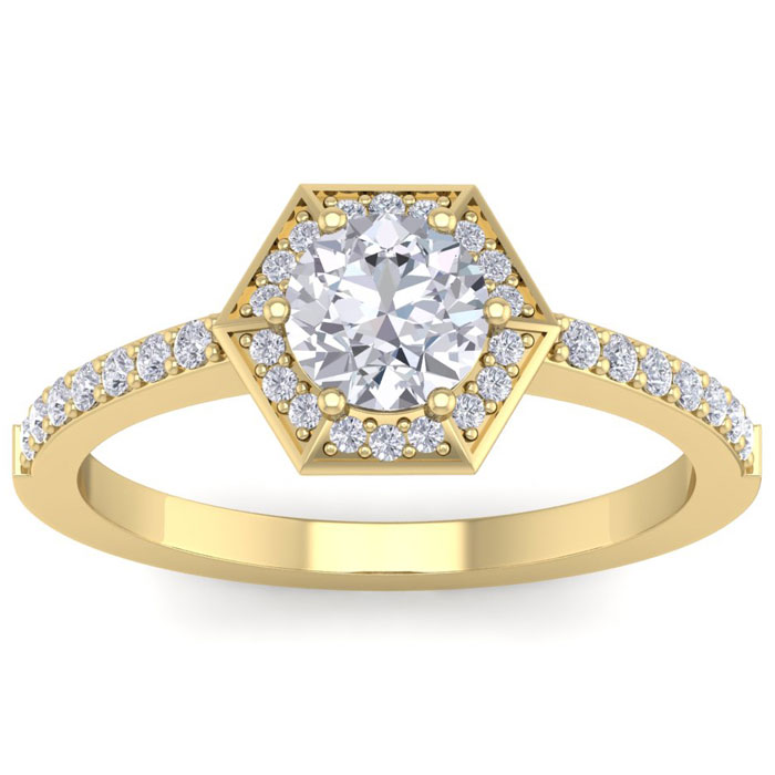 1 Carat Natural Halo Diamond Engagement Ring In 14 Karat Yellow Gold