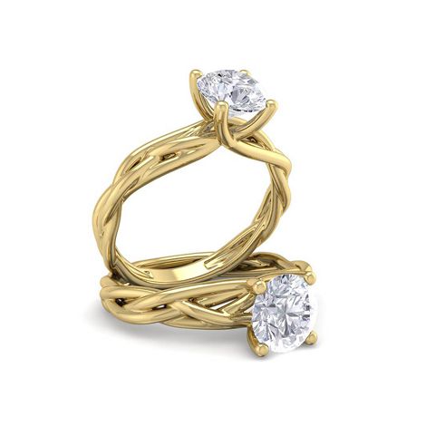 1 Carat Round Diamond Solitaire Intricate Vine Engagement Ring With Tapered Band In 14 Karat Yellow Gold