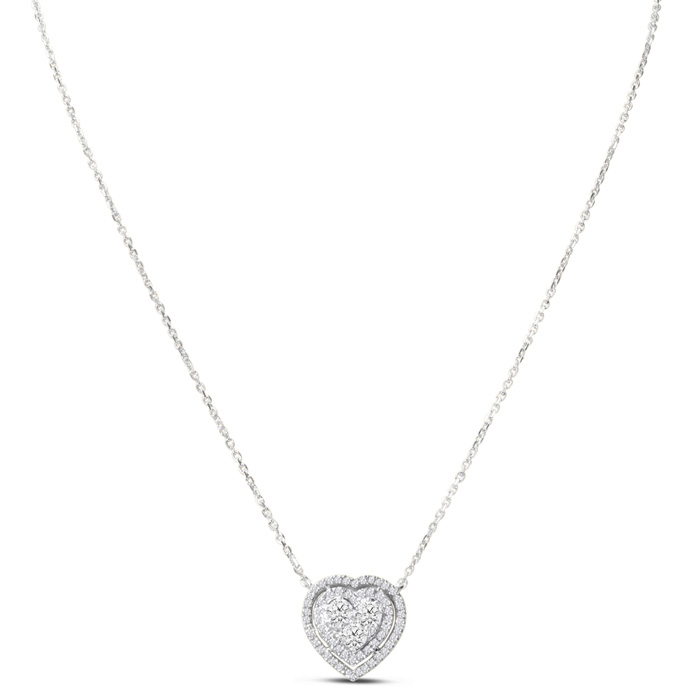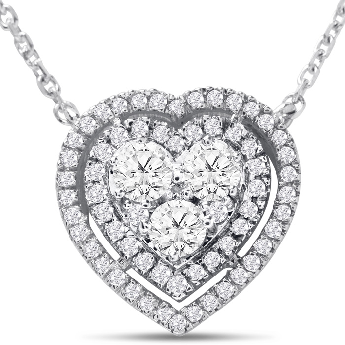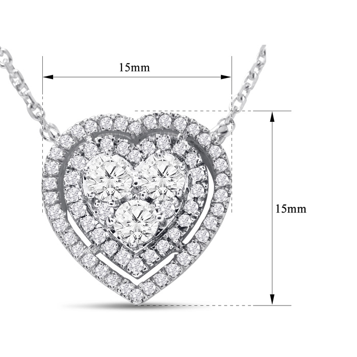 1 Carat Lab Grown Diamond Heart Double Halo Necklace In 14 Karat White Gold, 18 Inches