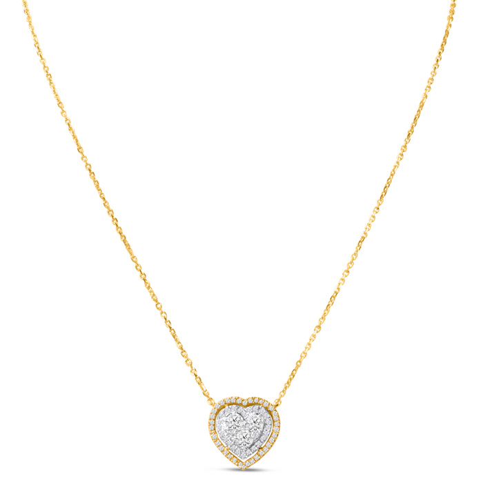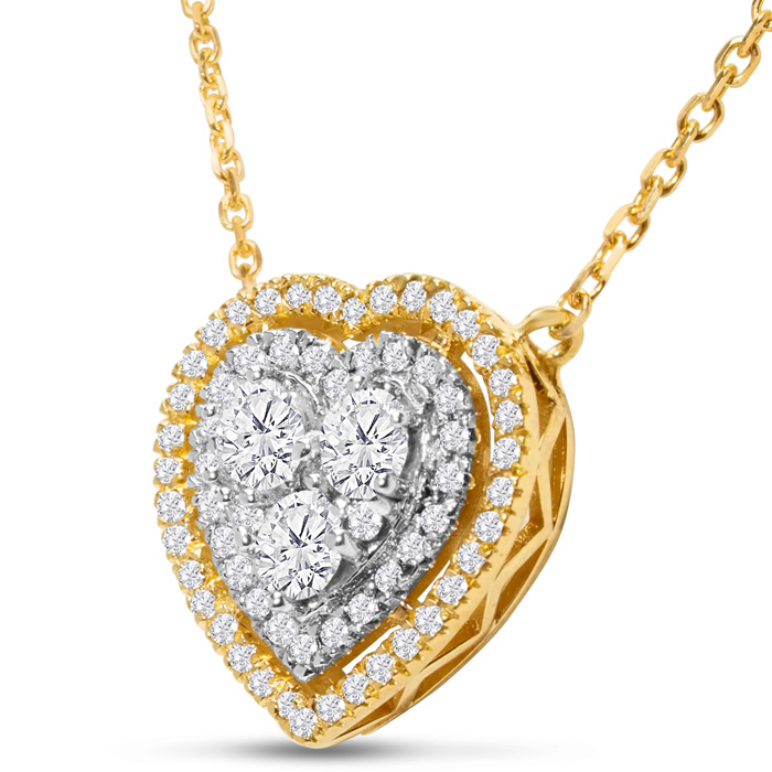 1 Carat Lab Grown Diamond Heart Double Halo Necklace In 14 Karat Yellow Gold, 18 Inches