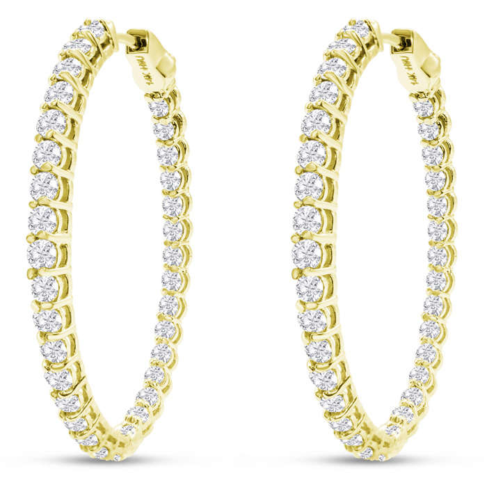 3 Carat Oval Shape Lab Grown Diamond Inside Out Hoop Earrings In 14 Karat Yellow Gold
