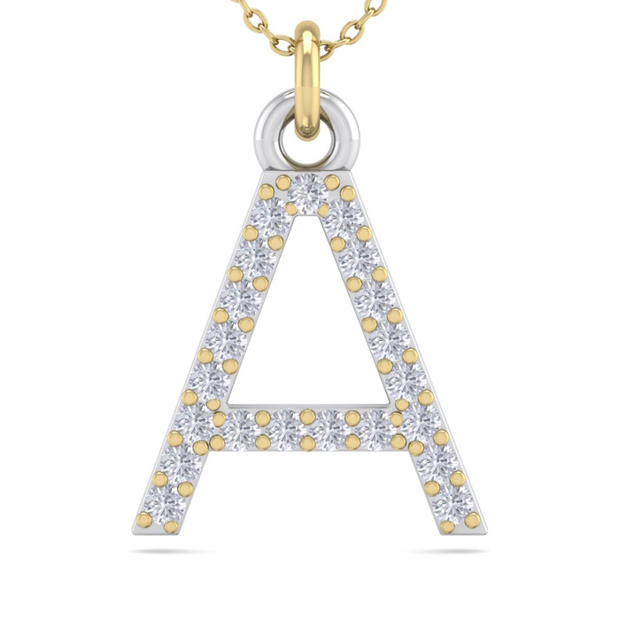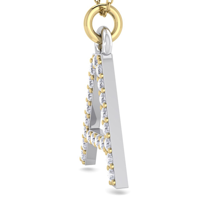 Letter A Diamond Initial Necklace In 14 Karat Yellow Gold With 21 Natural Diamonds