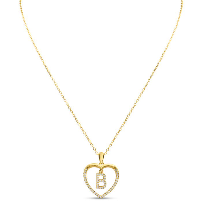 Estate Letter B 1/5ct Diamond Initial Necklace In Yellow Gold Over Sterling Silver, 16 Inches