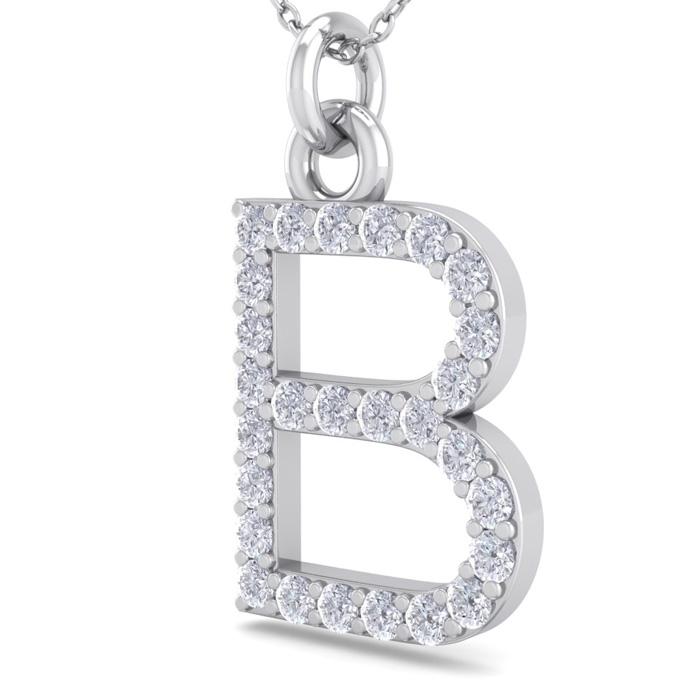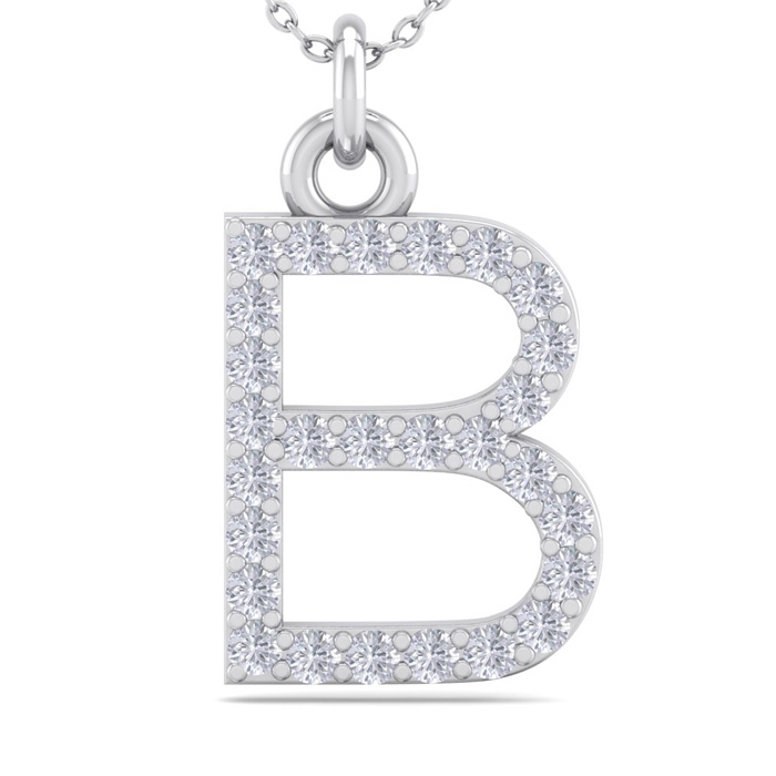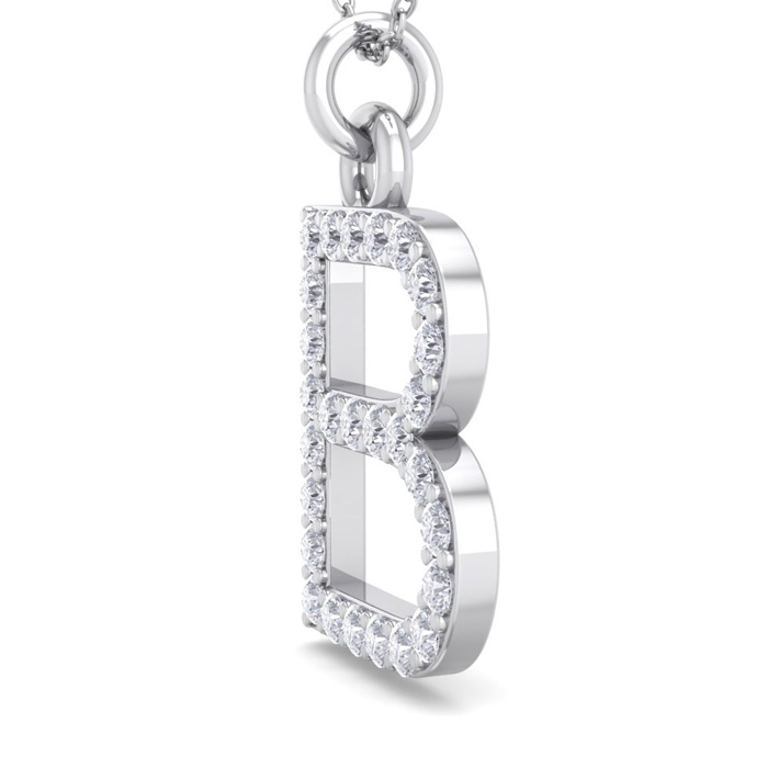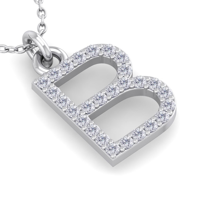 Letter B Diamond Initial Necklace In 14 Karat White Gold With 27 Natural Diamonds
