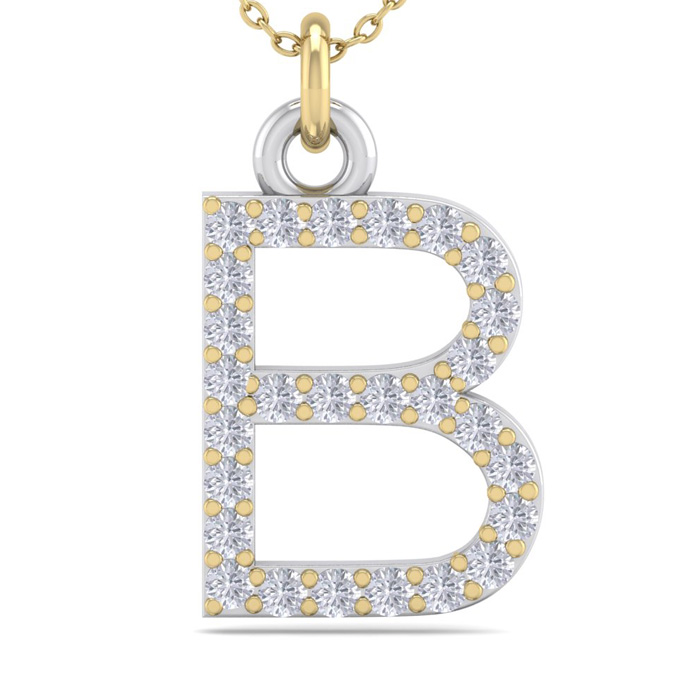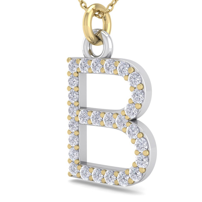 Letter B Diamond Initial Necklace In 14 Karat Yellow Gold With 27 Natural Diamonds