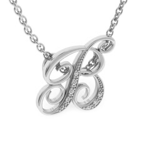 The B initial necklace you have been waiting for! Check out our newest initial series in solid 10 karat white gold with 6 shimmering diamonds, including an 18 inch cable-rope chain with spring-ring clasp. Diamond color I-J, diamond clarity I2-I3.