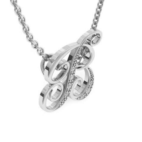 Letter B Diamond Initial Necklace In White Gold With 6 Natural Diamonds