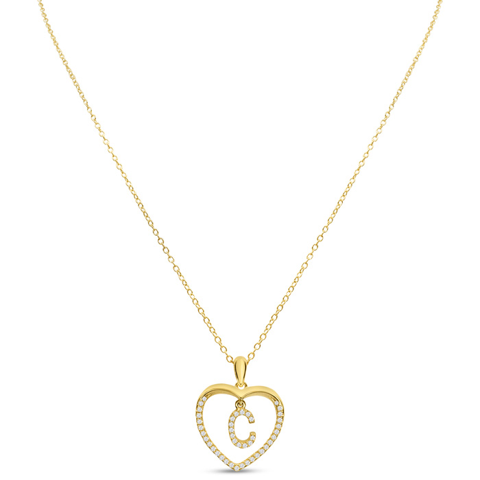Estate Letter C 1/5ct Diamond Initial Necklace In Yellow Gold Over Sterling Silver, 16 Inches