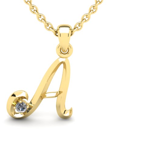 Letter A Natural Diamond Initial Necklace In 14 Karat Yellow Gold With Free Chain