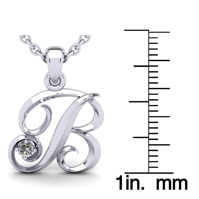 Script Letter B Initial Necklace With A Nice Real Diamonds, Solid Sterling Silver
