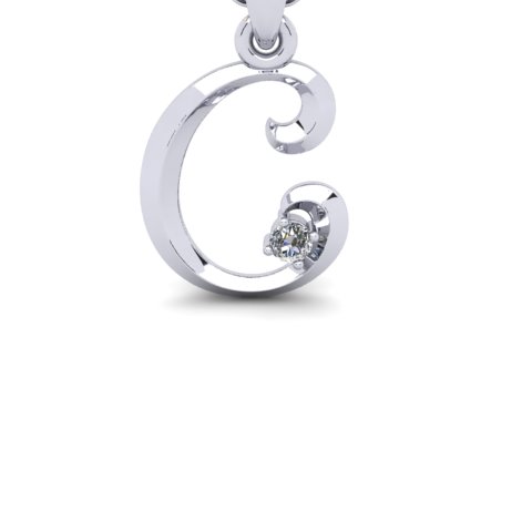 Letter C Natural Diamond Initial Necklace In 14 Karat White Gold With Free Chain