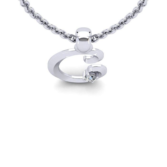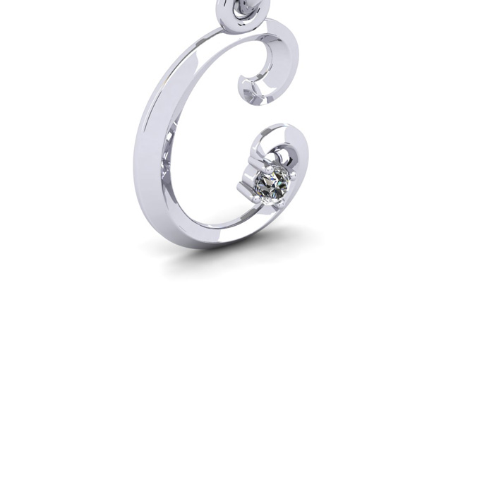 Letter C Natural Diamond Initial Necklace In 14 Karat White Gold With Free Chain