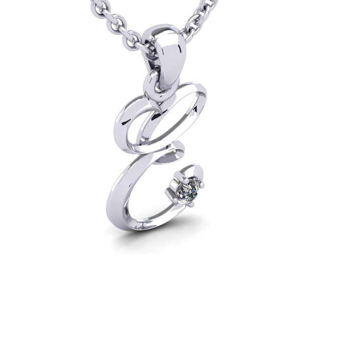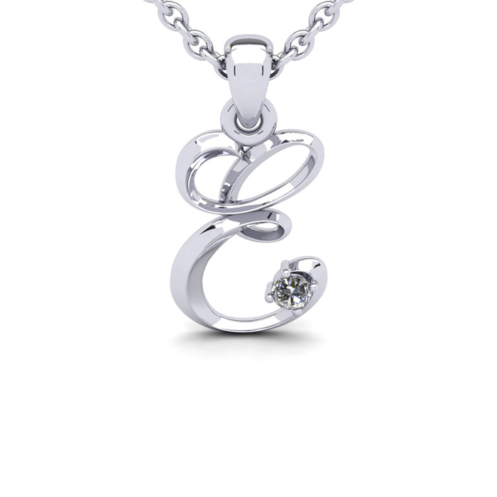 Script Letter E Initial Necklace With A Nice Real Diamonds, Solid Sterling Silver