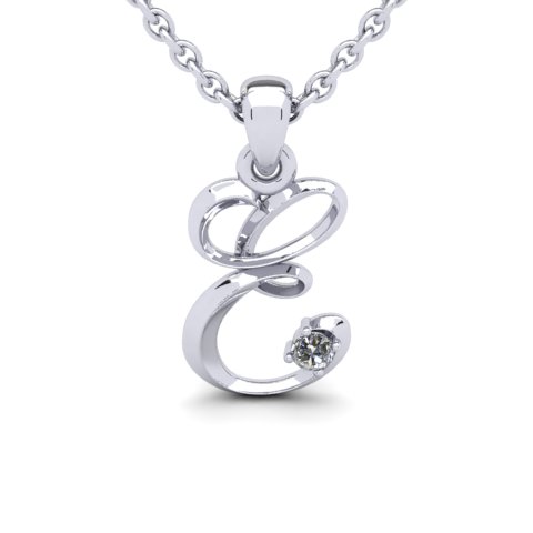 Script Letter E Initial Necklace With A Nice Real Diamonds, Solid Sterling Silver