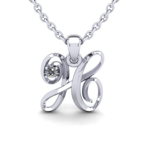 Script Letter H Initial Necklace With A Nice Real Diamonds, Solid Sterling Silver