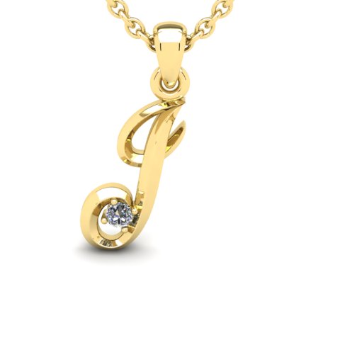 Letter J Natural Diamond Initial Necklace In 14 Karat Yellow Gold With Free Chain